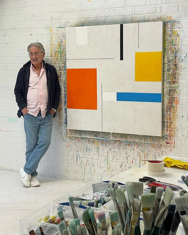 Jules Sher is a celebrated abstract landscape painter based in Perth, Western Australia, whose work captures the vast light, space and horizon of the Australian landscape in refined colour fields. Having studied at the Johannesburg Art School and the Central School of Art in London, Sher migrated to Australia in 1967. There, he developed a distinctive style blending realism and abstraction, often using a constant horizon line to balance earth and sky. Drawing on memory, mood and aerial perspective, his paintings transform the Western Australian landscape into contemplative, atmospheric compositions that evoke both place and feeling. His work is represented in major national and state collections, and he is recognised for his ability to translate the monumental silence and power of the land into a timeless visual language.