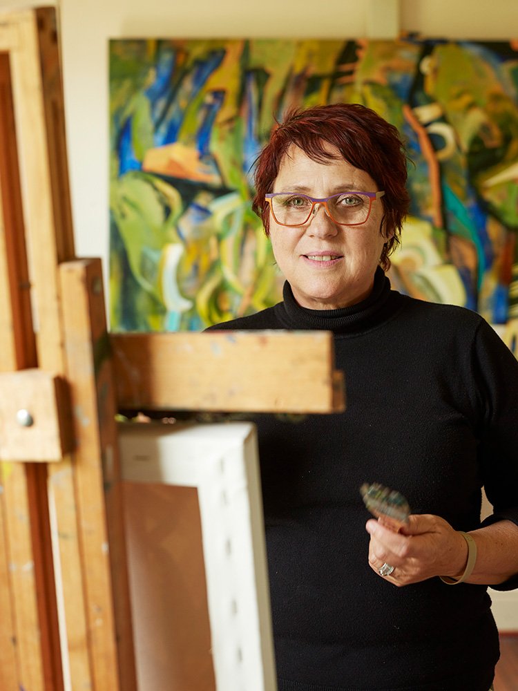 Magda Joubert is a Perth-based abstract painter whose layered, expressive works explore what she describes as 'mind-sites' — imagined landscapes shaped by memory, place and personal history. Drawing on experiences from diverse geographical locations, including the volcanic terrain of Java and the distinctive geology of South Africa, her work blends vibrant colours, textures, and forms to evoke a sense of psychological and emotional archaeology.