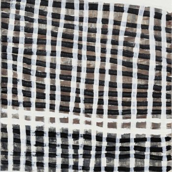 “I have chosen to construct work using a reduced or minimal palette and brush work. I am interested in duality and use opposite elements including black, white, dot and line and horizontals and verticals. Line has always mattered and varies by brush weight or pressure and speed and transgressions from the true horizontal and vertical of the picture plain. The meaning of my work lies in the methodology and my choice of materials particularly evident in my painterly patterning and the employment of economy and directness intrinsic to the Australian tradition to ‘make do’. Natural environmental processes including weathering, architectural details and ‘found marks’ observed on surfaces in the city also inform the work. Each step of my painting process is intuitive and repetitive until the work is imbued with a sense of harmony and balance; a striving for ‘nonduality’ or oneness/allness.”
