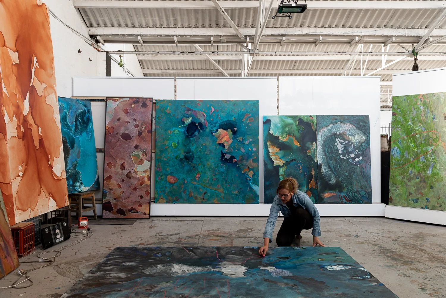 Bec Juniper is a painter and public artist whose work explores the fragility and resilience of the Western Australian landscape. With a career spanning three decades, she draws on the state's unique geology, such as salt lakes, mining scars and remote plains, seen through an aerial lens. Influenced by formative journeys into the interior with her late father, Robert Juniper, she transforms natural and man-made topographies into abstract visual compositions.