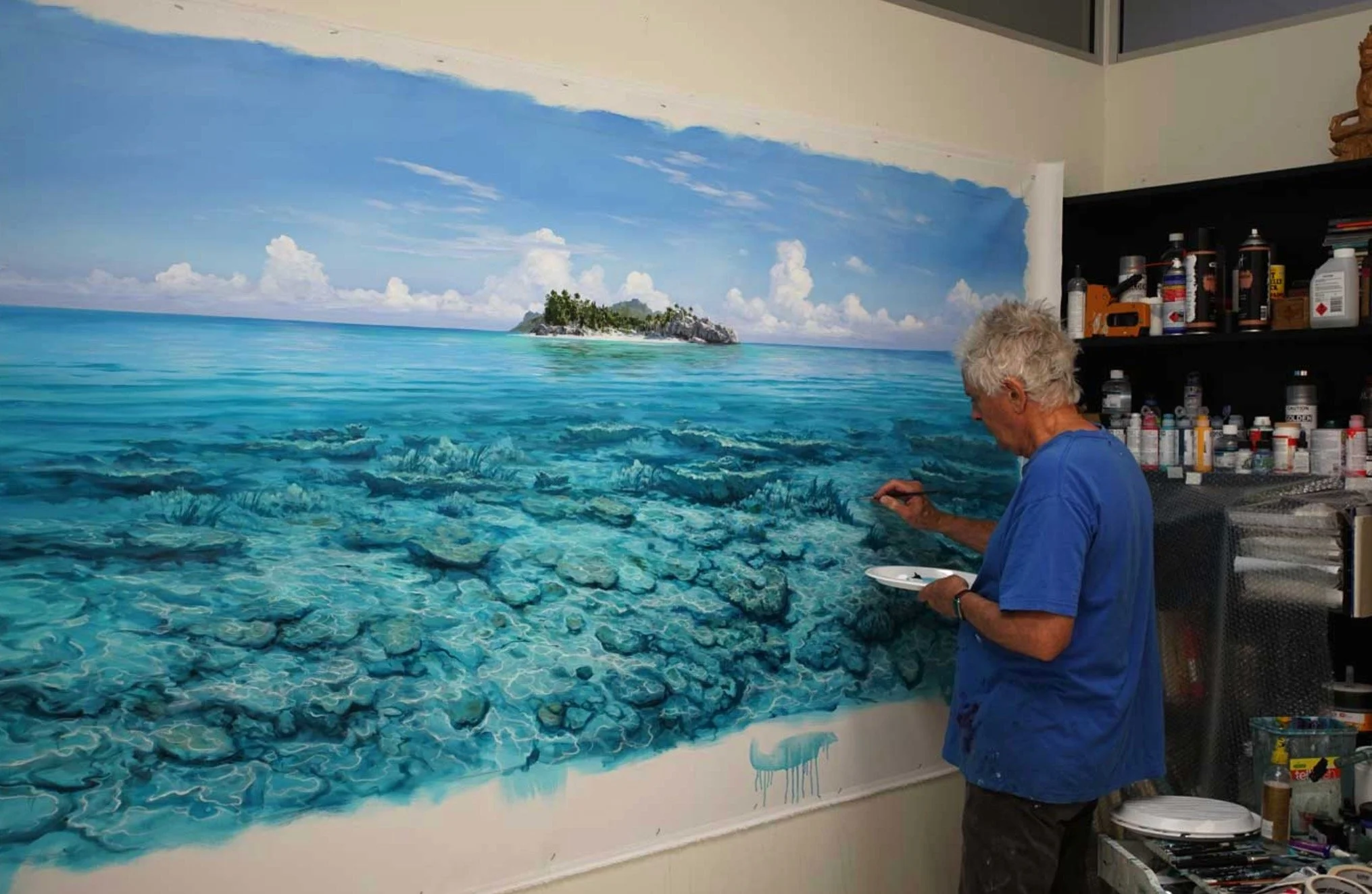 Leigh Hewson-Bower is a Perth-based realist painter celebrated for his luminous seascapes and finely detailed depictions of Australia’s coastal landscapes, particularly those of Western Australia. Trained at the Caulfield Institute of Technology, he began his career in photography and scenic design before transitioning to full-time painting. Drawing on photographic references, Hewson-Bower meticulously layers acrylics to capture the clarity of water, the texture of reefs, and the vast, light-filled skies of the Australian coastline. His work reflects both technical precision and an emotional connection to place, and is represented in private and public collections across Australia and internationally.