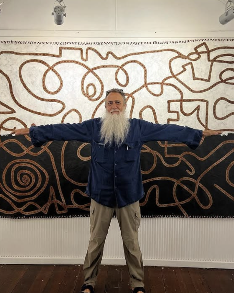 Stephen Eastaugh is a Western Australian–based contemporary artist whose vibrant, semi-abstract mixed-media works are deeply shaped by decades of global travel and immersion in remote and extreme landscapes. Calling himself “geographically promiscuous,” Eastaugh has journeyed to nearly 100 countries, establishing studios in unlikely places—from Russian icebreakers in the Arctic to winter-isolated Antarctic stations and even a bus in the Sahara Desert.