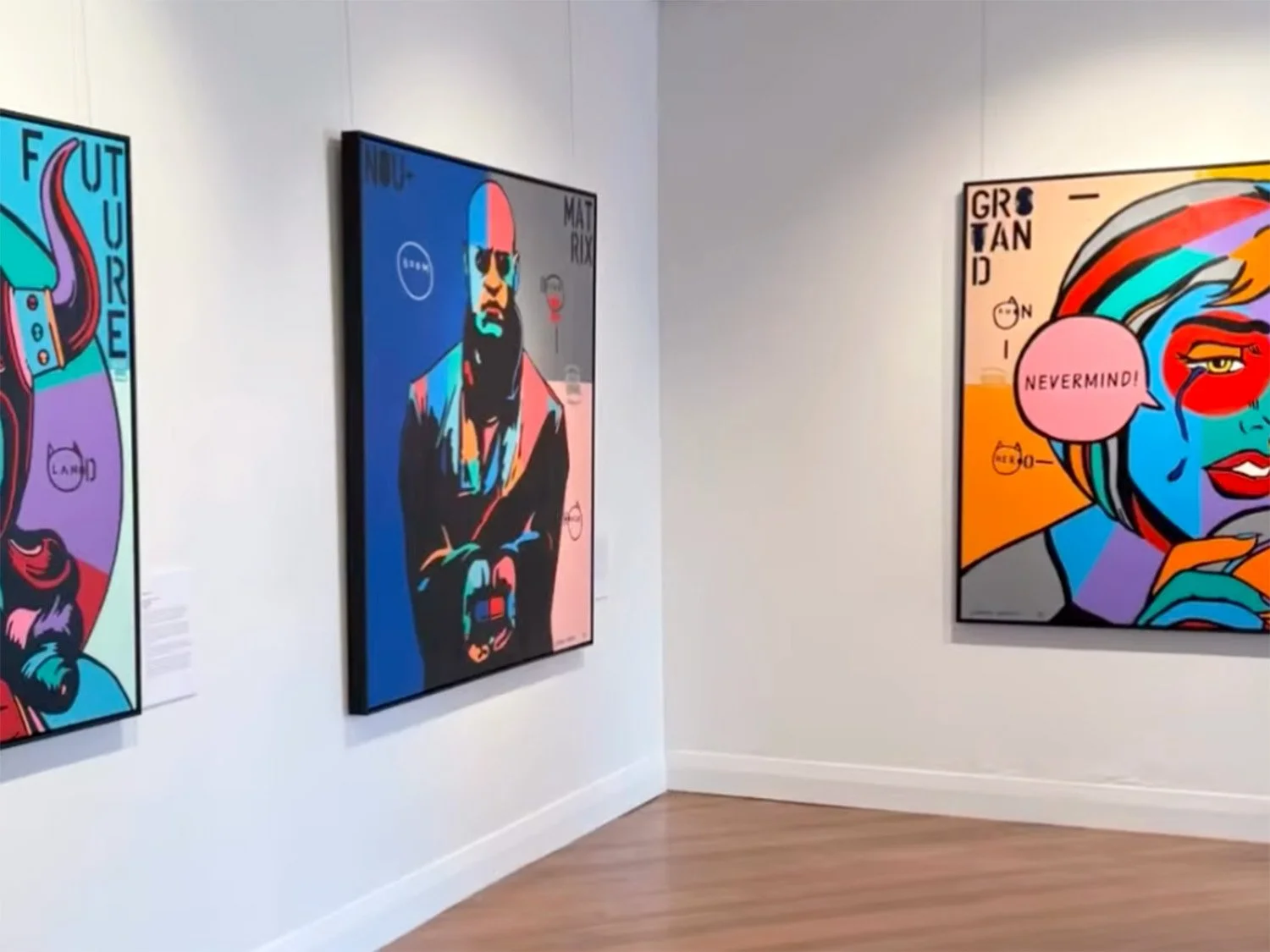 “We live in an age of overload. A world of 24/7 news cycles, infinite scrolls, and an endless stream of likes, swipes, and soundbites. Pop culture isn’t just part of our lives anymore, it is our lives, saturating every screen and every waking moment with a wash of digital noise. With Everything at Once , I wanted to capture the dizzying sugar rush of this hyper-connected reality, where choice is infinite, stimulation is relentless, and even the things we love most can turn toxic. I kept coming back to the question: ‘what if everything you love is trying to kill you?’ Not in a romantic sense, but in the way our addictions, to Pop culture, to technology, to the quick-fix pleasures of modern living, can easily turn on us and lead to our undoing. The inspiration for the title came from Travis’ 2016 album Everything at Once , which perfectly captures the thrill and the chaos of a life lived perpetually online, where everything is happening everywhere, all at once. My new paintings dial this up to maximum volume, with hyper-saturated explosions of colour, bombastic cultural mashups, and defiantly Pop icons that feel larger than life. At its core though, Everything at Once is about Poptimism. Yes, the world is overwhelming, but there is joy in leaning into the madness - of finding clarity in the chaos, embracing the unexpected, and defining your own reality in a world where meaning is often lost amidst a sea of infinite impressions”.