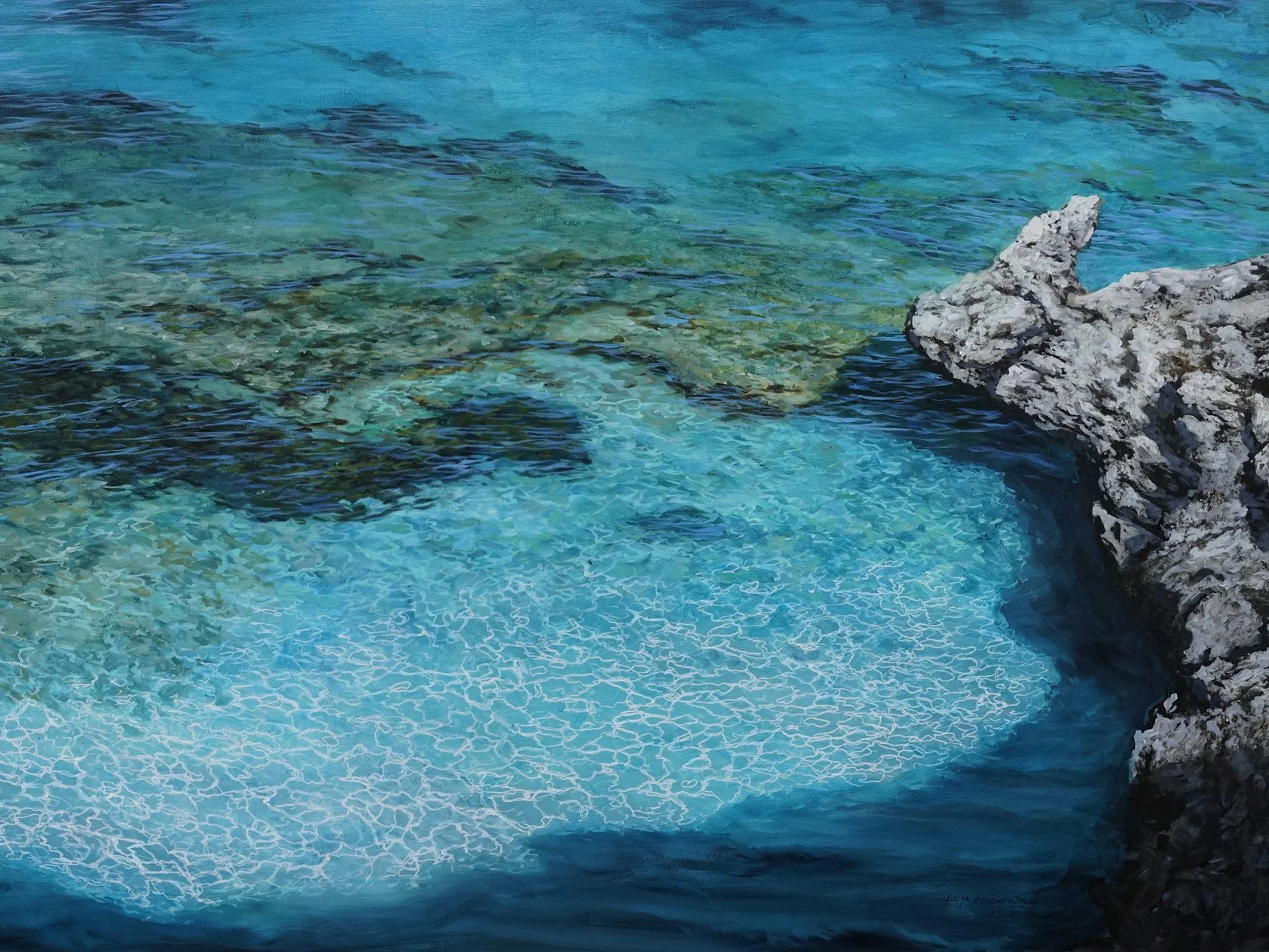 Celebrating one of Western Australia’s most beloved beach destinations, Leigh Hewson-Bower explores the interplay of shadows and light across Rottnest Island. His vivid depictions of the shimmering turquoise waters capture not only Rottnest’s clarity and beauty, but also the memories we share with family and friends and the timeless joy of summers on the island.