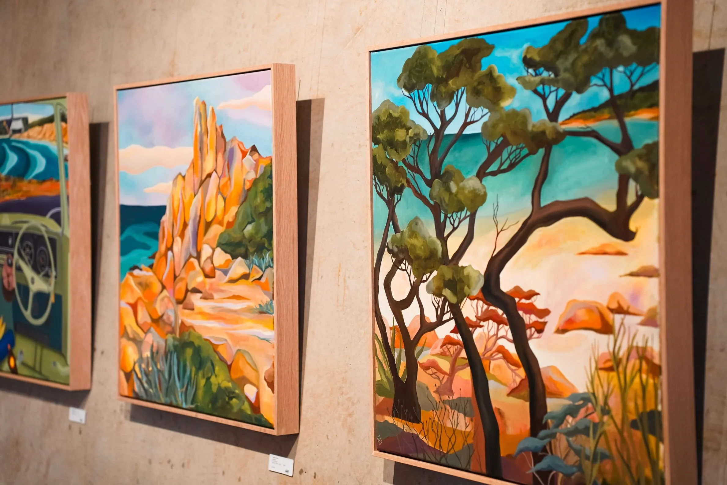 Cherubino and Linton & Kay Galleries are thrilled to present Kathryn Junor's latest body of work, Sou'West Freedom. This evocative collection captures a deep sense of nostalgia and exploration, inspired by road trips down south. through her distinctive modernist and cubist approach, Kathryn transforms familiar Australian landscapes and moments into geometric shapes and vibrant colours, celebrating the interplay between freedom, adventure, and the spaces that define contemporary Australian life.